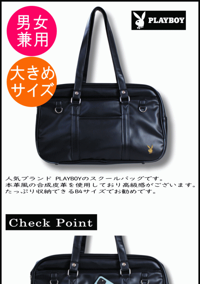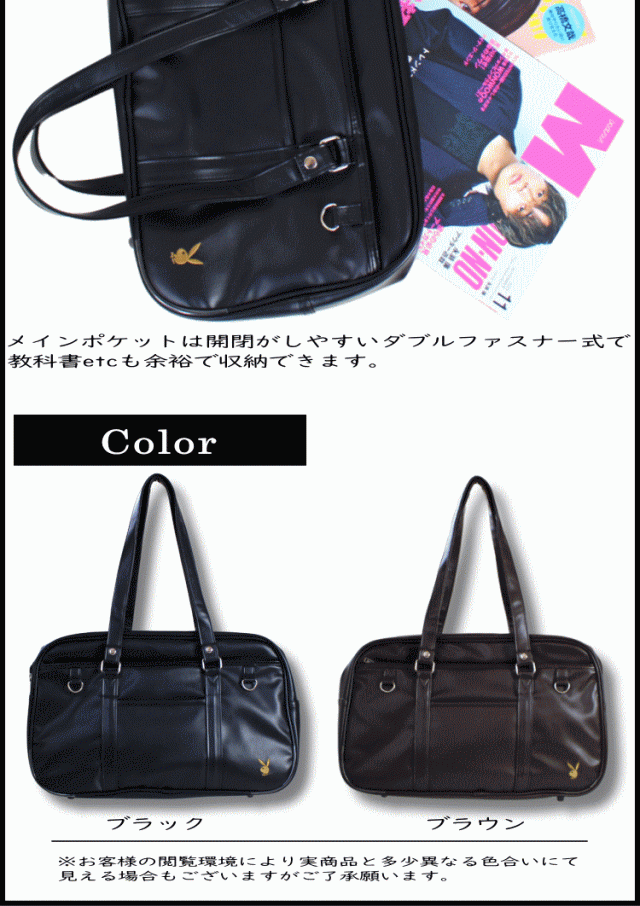 スクールバッグ PLAYBOY プレイボーイ 本革風 大きめサイズ 学生かばん 手提げ鞄 通学バッグ サブバッグ 軽量 ブラック色 ブラウン色 2PBA6SB03