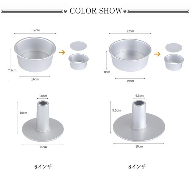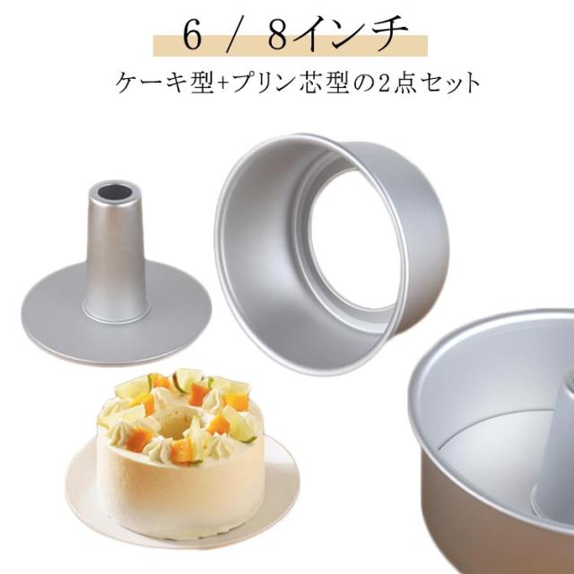 アルミ製 6インチ/17cm 8インチ/22cm プリン芯型 アルミシフォンケーキ型 シフォンケーキ型 つなぎ目なし 2点セット 手作り ケーキ型 焼き型 製菓グッズ 道具 シフォン型 洋菓子型 シフォンケーキ お菓子作り 手作り 製菓道具 底板 外せる