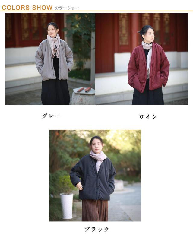 | ジャケットタイプ綿入れ半纏。 おしゃれなデザイン、外でも着用できる半纏をお探しの方にもおすすめ。 中綿を入れているため、暖かさを逃がさず、ふっくらとした着心地です。 袖にかけて細くなるシルエット、家事の時も邪魔せずに、動きやすい。 | |