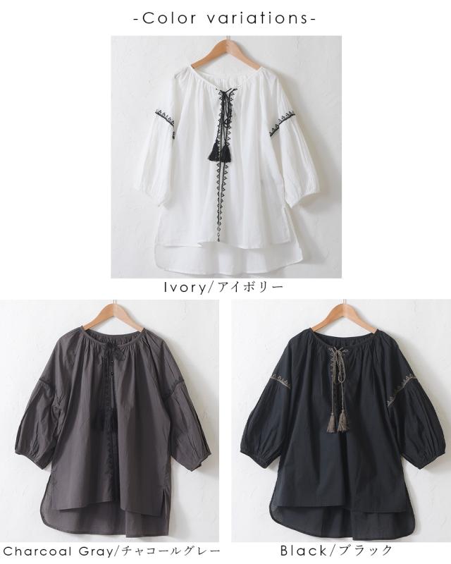 【メール便可】ブラウス レディース トップス 五分袖 刺繍 タッセル レース 綿 綿100% コットン コットン100% フェミニン カジュアル ゆったり 大人可愛い 大人 ナチュラル 無地 おしゃれ 黒 白 リゾート 海 プール 旅行 春 夏