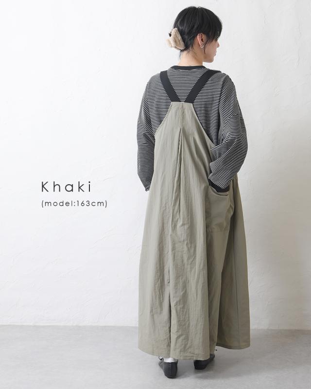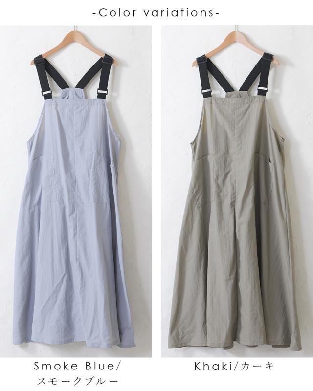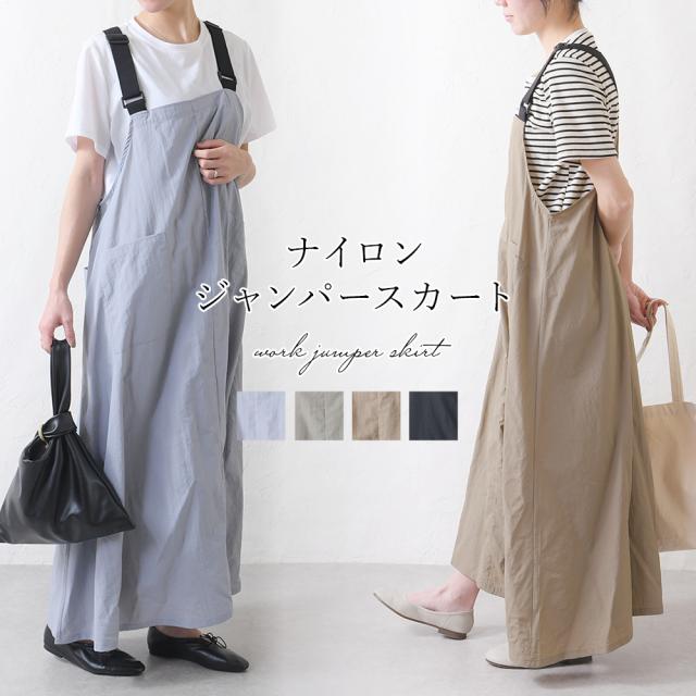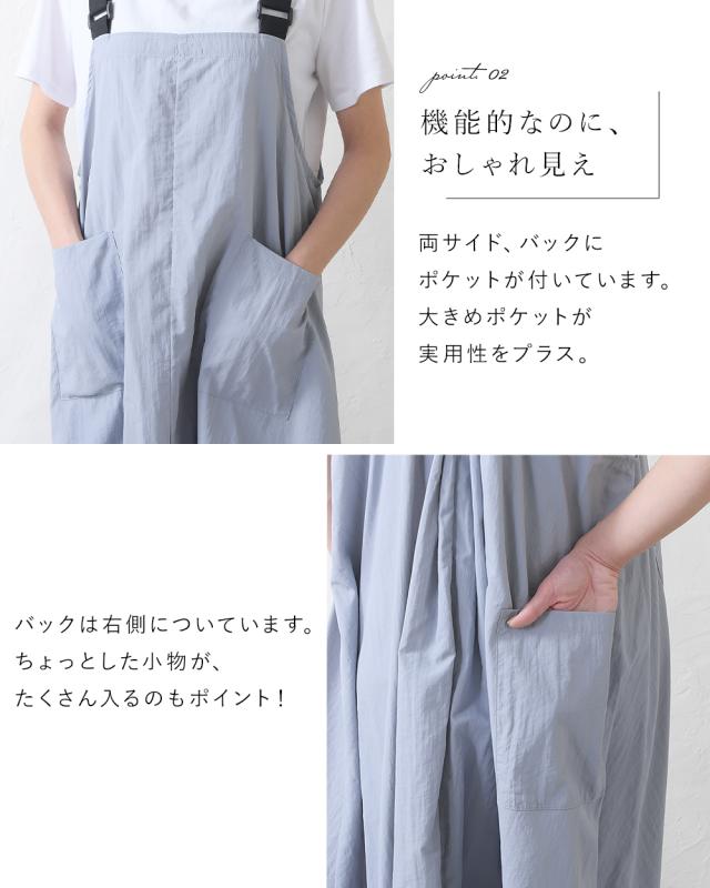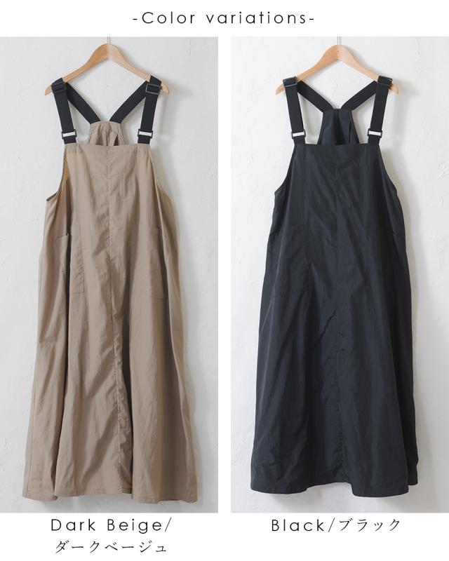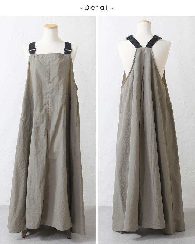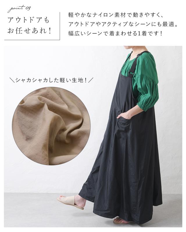 【メール便可】ジャンパースカート レディース ナイロン シャカシャカ サスペンダー付き 肩 ベルト 調節可 ワンピース サロペットスカート ロングスカート ロングワンピース ロング丈 マキシ丈 体型カバー カジュアル ゆったり ナチュラル 大人 春 夏