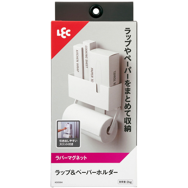 ラップ&ペーパーホルダー(ラバーマグネット) ホワイト 耐荷重2kg K00564 [キッチンペーパーホルダー 収納ケースキッチン収納 レック]