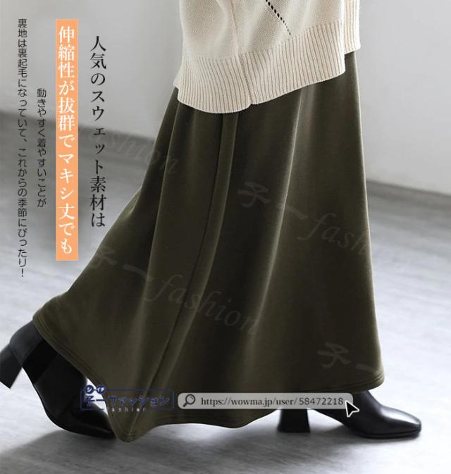 裏起毛スカート ロングスカート 冬新作 新作 送料無料 無地 あったか 暖かい ウエストゴム マキシスカート シンプル レディース カジュアル ゆったり Aライン ハイウエスト 着やせ きれいめ 秋冬
