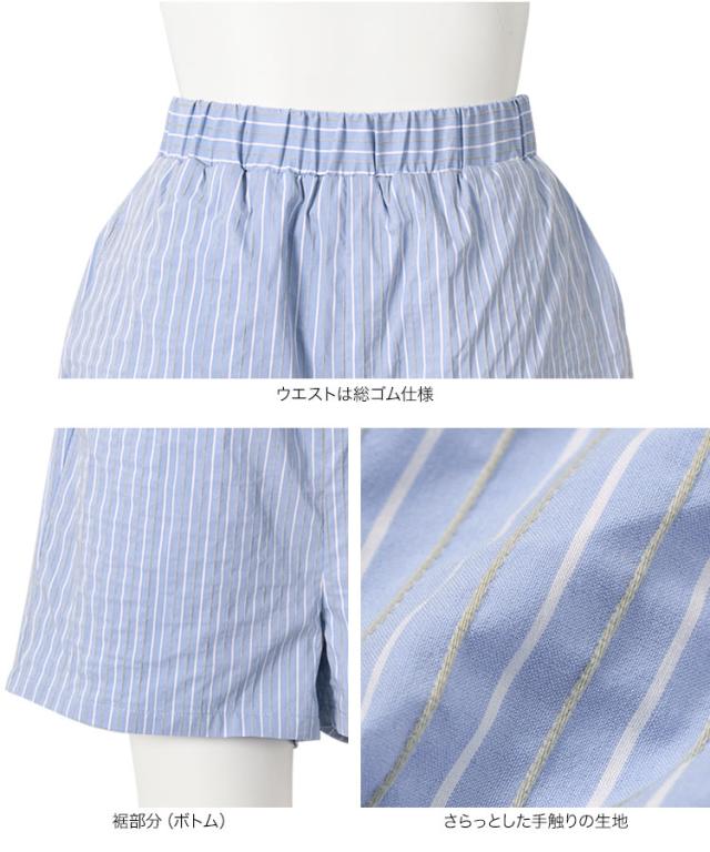 立体感のあるストライプ生地を使用したシャツとショートパンツのセットアップ。シンプルでありながら存在感のあるデザインで、どんなシーンでもおしゃれに決まります。程よいサイズ感で、カジュアルながらもきちんと感もある一着に仕上げました。【素材・サイズ感】シャツはメンズライクなゆったりとしたサイズ感が特徴。バックにタックが施されており、動きやすさも抜群です。ショートパンツは、ウエストがゴム仕様でストレスフリーな着心地を提供。リラックスしたフィット感で、長時間の着用でも快適に過ごせます。両脇には便利なポケットもあり、裏地が付いているため透けにくく、安心してお使いいただけます。セットでの着用はもちろん、シャツとパンツを単体で使うスタイルもオススメ。※キャンセル/変更不可※※お届けまでの日程について