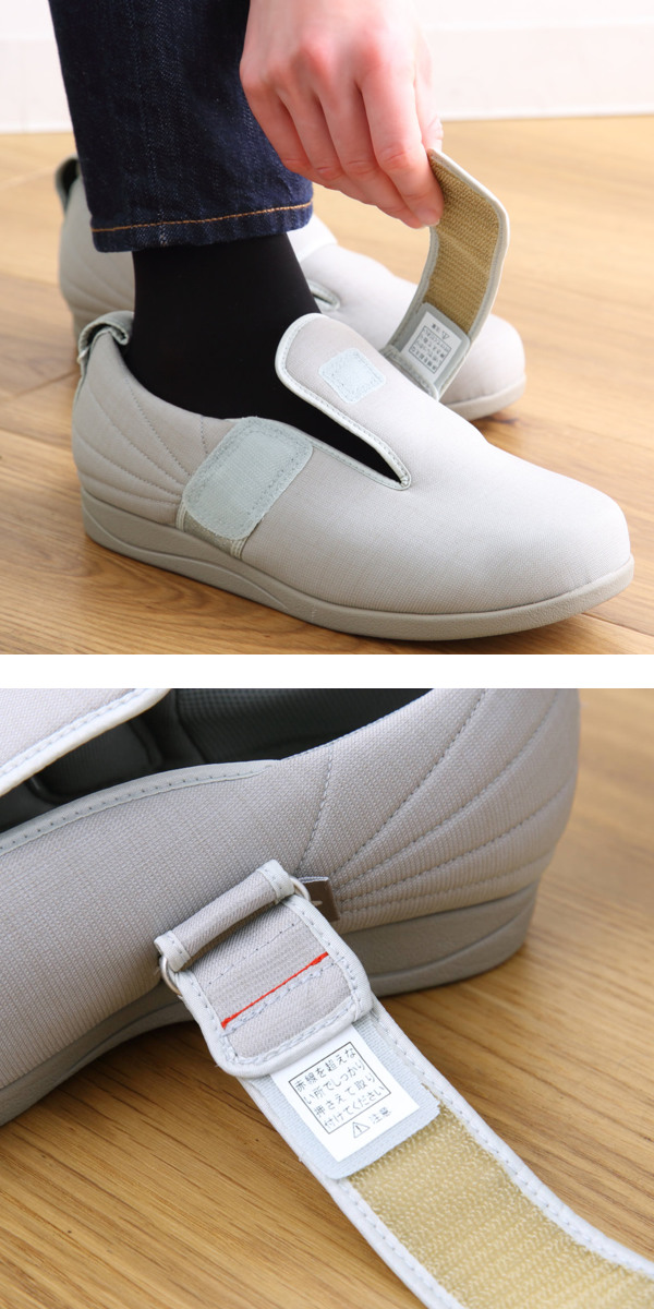 かかとの上部にループが付いているので、指に力が入りにくい人やシューズのかかとに指を入れて履くという細かい動作がしにくい人でも楽に履いていただけます。