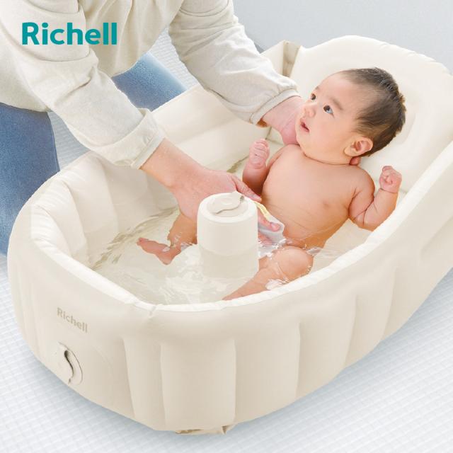 ベビーバス ふかふか ベビーバスプラスK エアーベビーバス 折りたたみ ( リッチェル ベビー バス エアー お風呂 沐浴 ストッパー コンパクト 乳児 赤ちゃん ベビーチェア 抗菌 防カビ シンク 沐浴用 ベビーケア 出産準備 )
