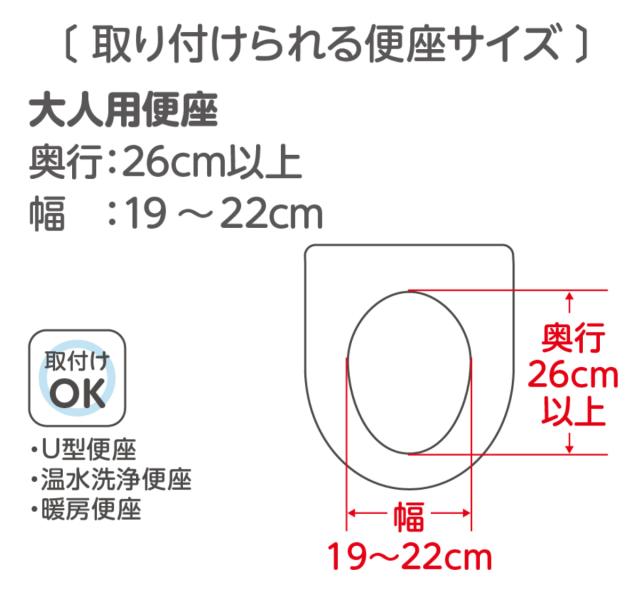 一部特殊な形状の大人用便座には取り付けられない場合がありますので、使用サイズにお気をつけください。
