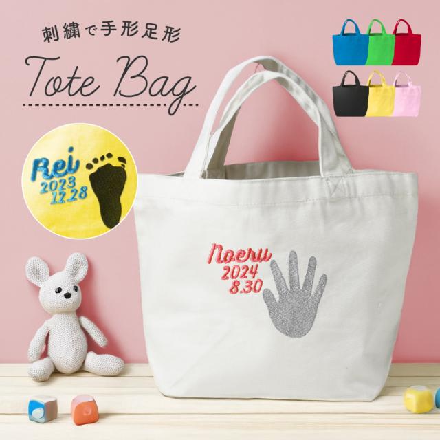 名入れ無料刺? トートバッグ 手形 足形 名入れ 自立する バック キャンバス生地 弁当 ランチ 着替え お母さん 母 お父さん 父 耐久性 こども 刺しゅう 大きめ 小さめ ブランド おしゃれ かわいい プレゼント