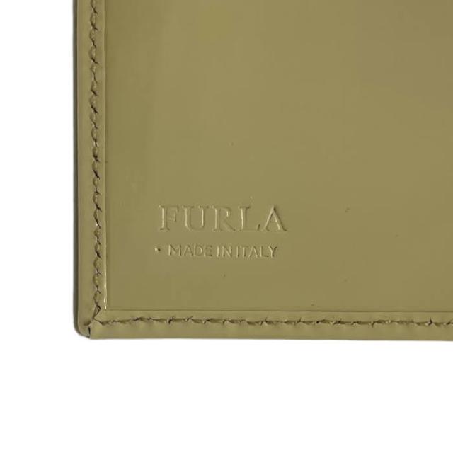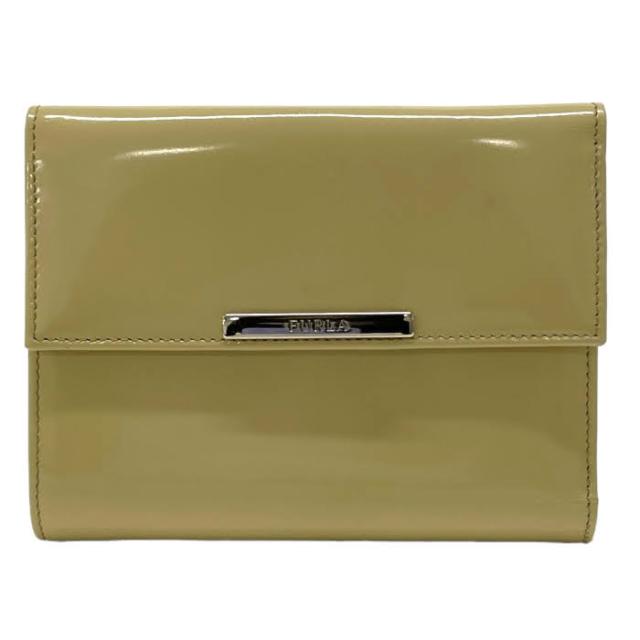 フルラ FURLA 二つ折り財布 パテント レザー コンパクトウォレット エナメル レディース ライトベージュ 中古 mal08015