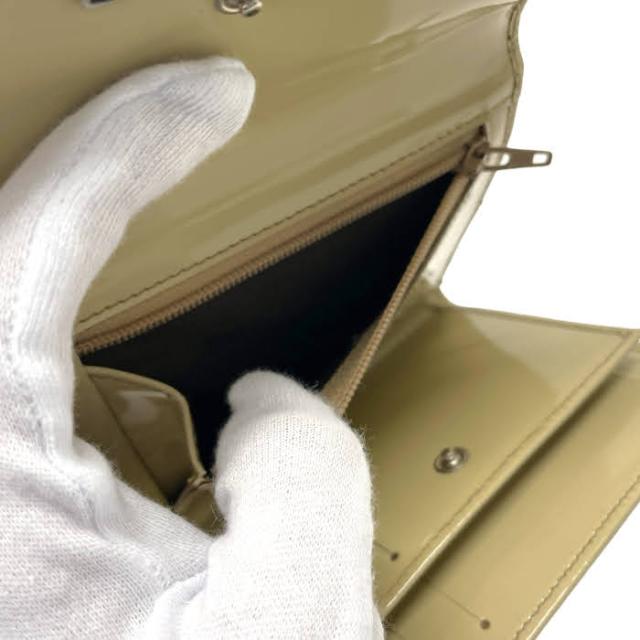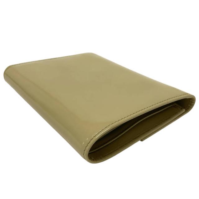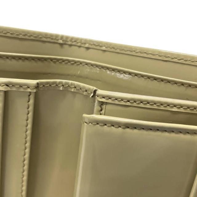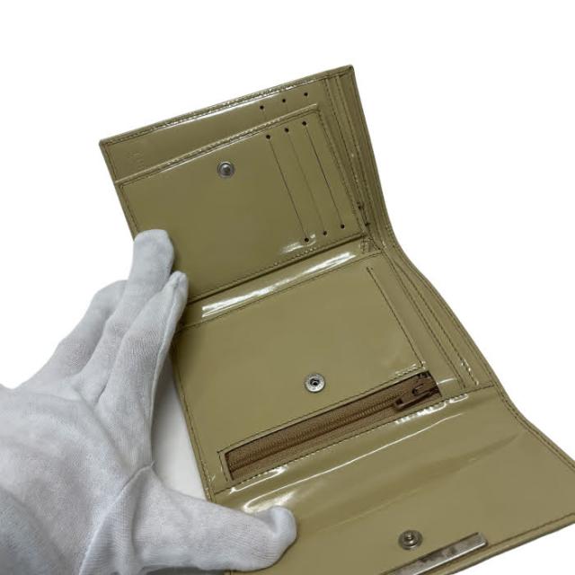 二つ折り財布 パテント レザー コンパクトウォレット エナメル レディース ライトベージュ