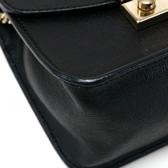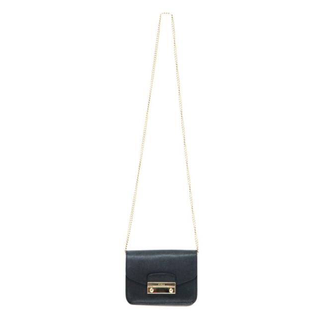 フルラ FURLA メトロポリス チェーンショルダー レザー ショルダーバッグ クロスボディ 斜め掛け 肩掛け ポシェット レディース ブラック / ゴールド 中古 mat25003