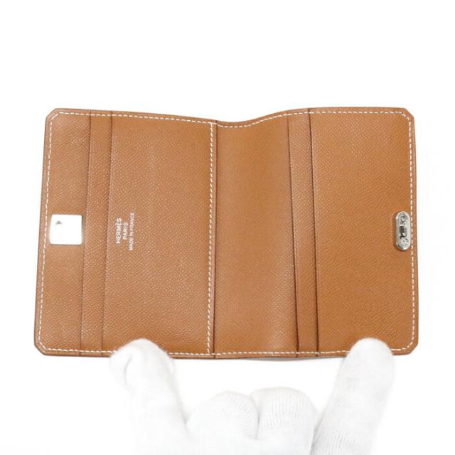 【Aランク】 エルメス HERMES メドール カードケース ヴォーマダム (レザー) SV金具 B刻印 2023年 二つ折り カード入れ カードホルダー パスケース メンズ レディース ゴールド (ライトブラウン) 美品 中古 mbg07005