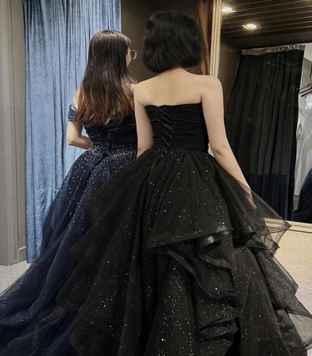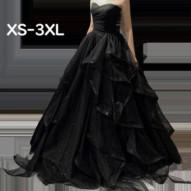 ドレス レディース ロング丈 ピアノ 発表会 パーティードレス チューブトップドレス 結婚式 肩出し 袖なし イブニングドレス フォーマル 編み上げ キラキラ 着痩せ きれいめ エレガント お呼ばれ 二次会 披露宴 演奏会 忘年会 司会ドレス ブラック
