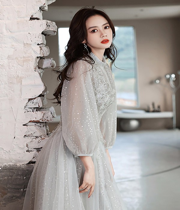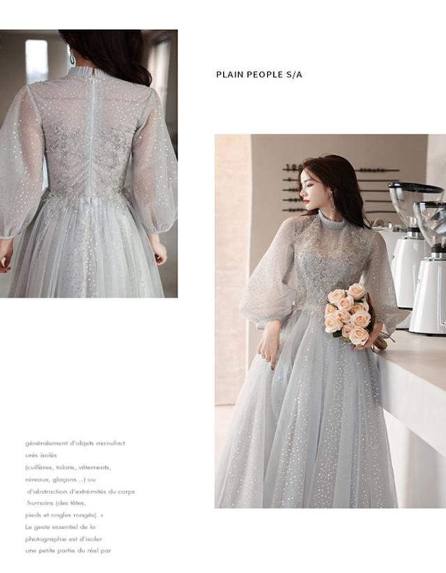 ドレス レディース ロング丈 ピアノ 発表会 パーティードレス 結婚式 イブニングドレス フォーマル 大人 ドレス エレガント お呼ばれ 袖あり 長袖 二次会 披露宴 演奏会 忘年会 司会ドレス グレー da003m6m6m5