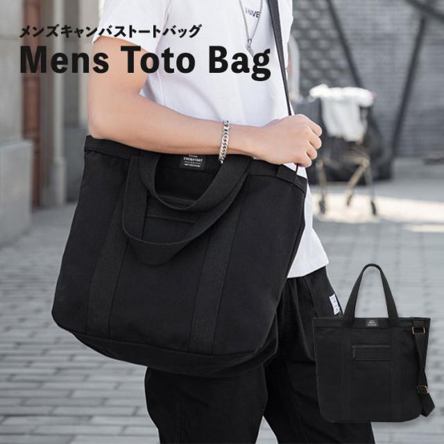 トートバッグ メンズ 帆布 キャンバス カジュアル 縦型 大容量 2way A4 大学生 通勤 通学 学生 ブラック 黒 バッグ 斜め掛け 手提げ ファスナー 縦長 カバン 布 高校生 肩掛け かっこいい オシャレ 小さめ 男性 送料無料 10代 20代 30代 ノートPC a4