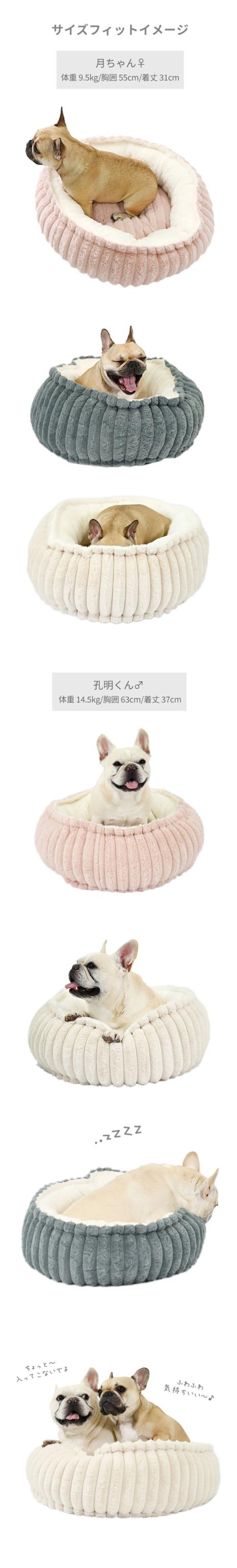 犬用 ペットベッド クッション 丸型 ドーナツ型 ラビットファー フェイクファー 暖かい 新型 フレンチホイホイ 60cm ベッド ふわふわ かわいい 洗える フレンチブルドック フレブル 小型犬 中型犬 猫 冬 KM865G