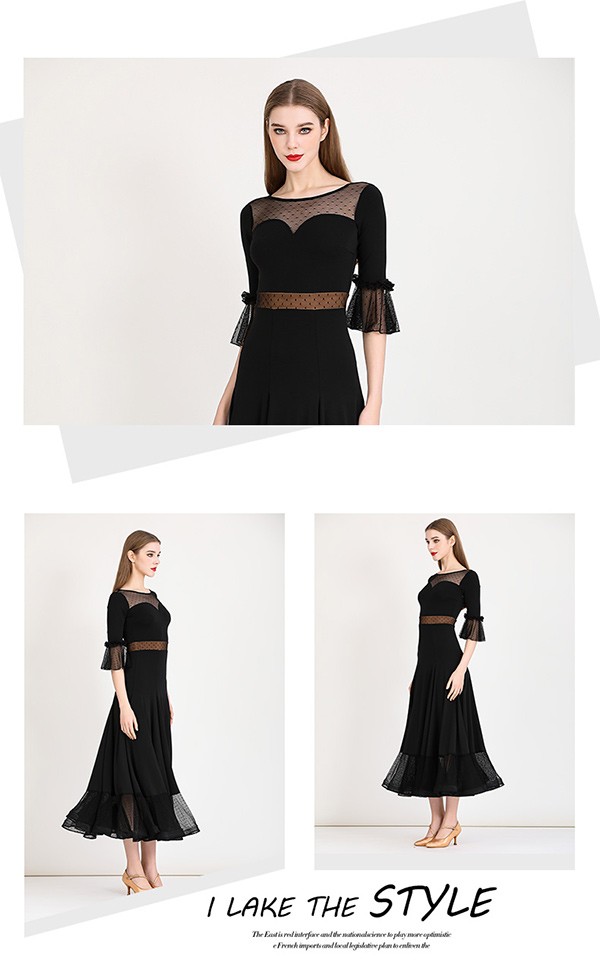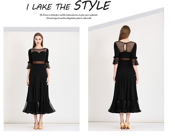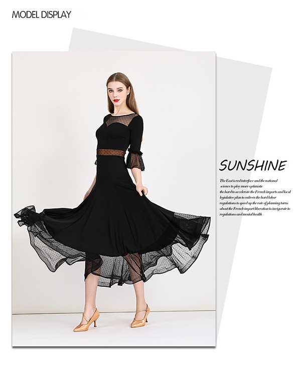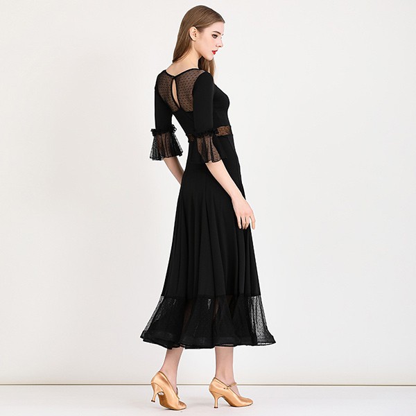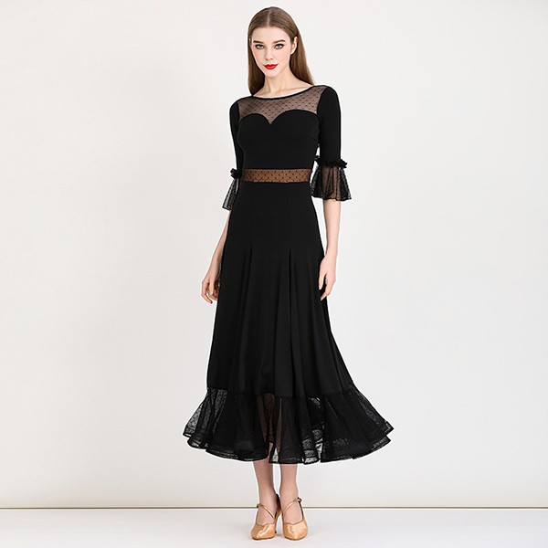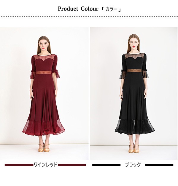 社交ダンス ドレス ロングドレス フリル 半袖 モダンドレス 社交ダンス衣装 モダン スタンダード ワルツ ワンピース 無地 ダンス衣装 ステージ衣装 パーティー 発表会 競技用 コンクール 練習着 レッスン 舞台用 演奏会 ワインレッド ブラック 黒