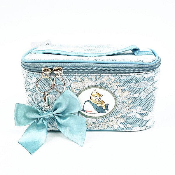モフサンド mofusand バニティーポーチ レース×刺繍 コスメポーチ ブルー
