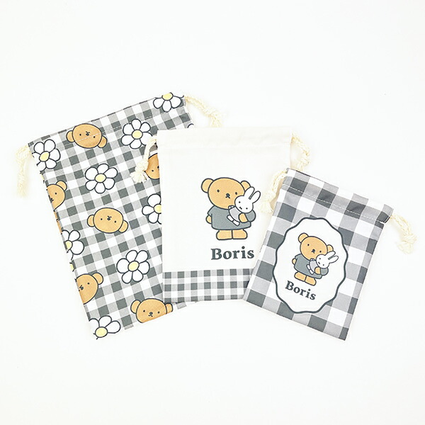 miffy ミッフィー 3P巾着 グレー ギンガムシリーズ ポーチ 小物入れ