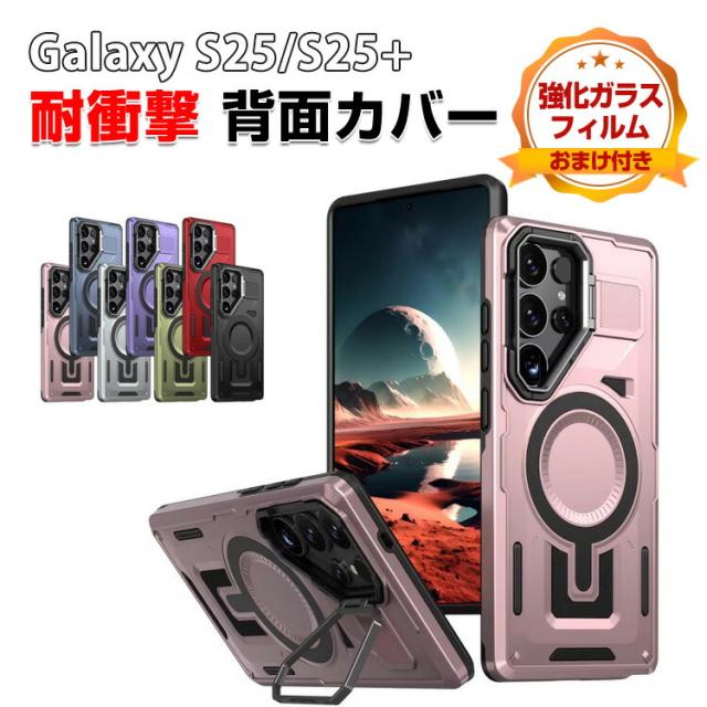 Samsung Galaxy S25 カバー Galaxy S25+ ケース 耐衝撃 カバー 衝撃に強いTPU&PC 2重構造 スタンド機能 マグネット吸引機能付き シンプル 衝撃防止 おすすめ おしゃれ カバー サムスン ギャラクシー S25 S25+ ケース 背面カバー CASE 強化ガラスフィルム おまけ付