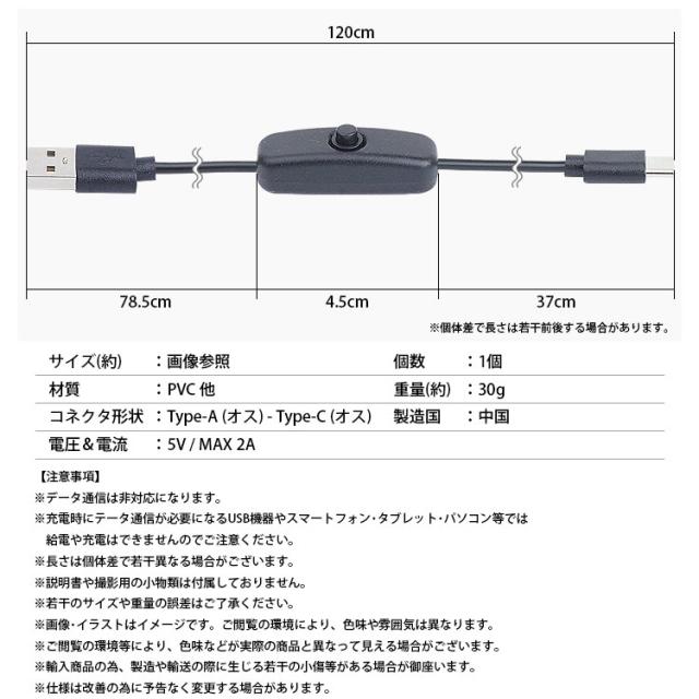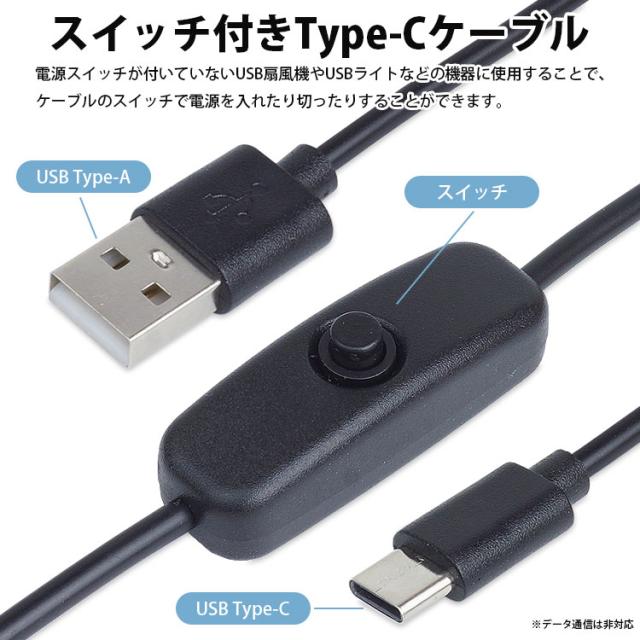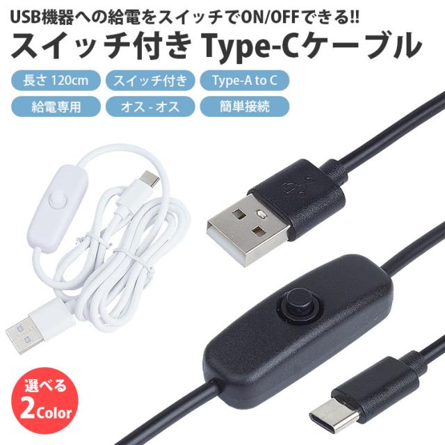 Type-C ケーブル スイッチ付き 120cm USBケーブル Type-A オス Type-C オス ON OFF スイッチ 電源スイッチ 簡単接続 給電専用 USB C タイプC PR-USBSW53【メール便 送料無料】