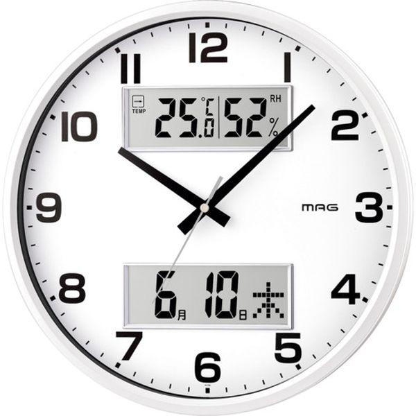 掛け時計 アナログ ダブルポスト 静音 連続秒針 温度 湿度 日付 曜日 カレンダー ホワイト 直径32cm W766WHZ-TN WO店