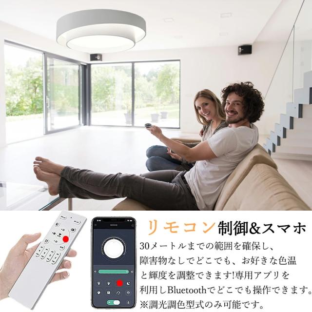 | リモコンもしくはスマホで明るさ10〜100%調整可能、色温度を電球色〜昼光色調整可能です。在宅勤務や新聞を読む時に字がはっきり見える昼光色にしたり、食事やテレビを見る時に暖かい電球色にしたり、場合によって一番相応しい明るさと色を選択でき、リビング/キッチン/寝室/玄関等様々なシーンに適用です。 |