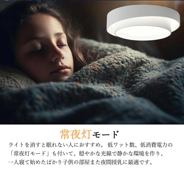 | 低消費電力の常夜灯付いており、一人寝て始めてのお子様の部屋また夜間授乳、お年寄りの看護などに便利。 タイマー機能を設定すると、自動的に消灯できます。電気の節約になり、電源を切るのを忘れたり、電気をつけたまま寝てしまう人に最適。 記憶機能は選択した明るさを記憶でき、再び点灯すると同じ明るさを維持するので、わざわざ調節必要ありません。 |