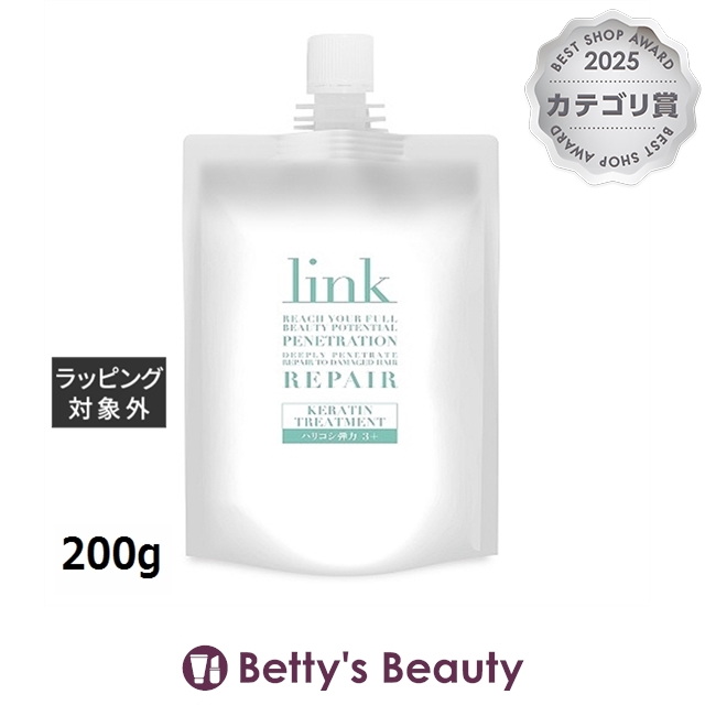 リンク リアクション テクノロジーにより、link ケラチンシャンプーの補修成分と反応し、補修サポートを高める反応型トリートメント。カラーの褪色やエイジング、紫外線、うねり、静電気から髪を守り、ふんわりともちもち感・コシのある髪へと導きます。