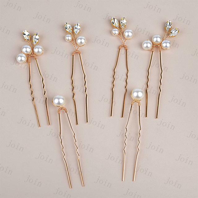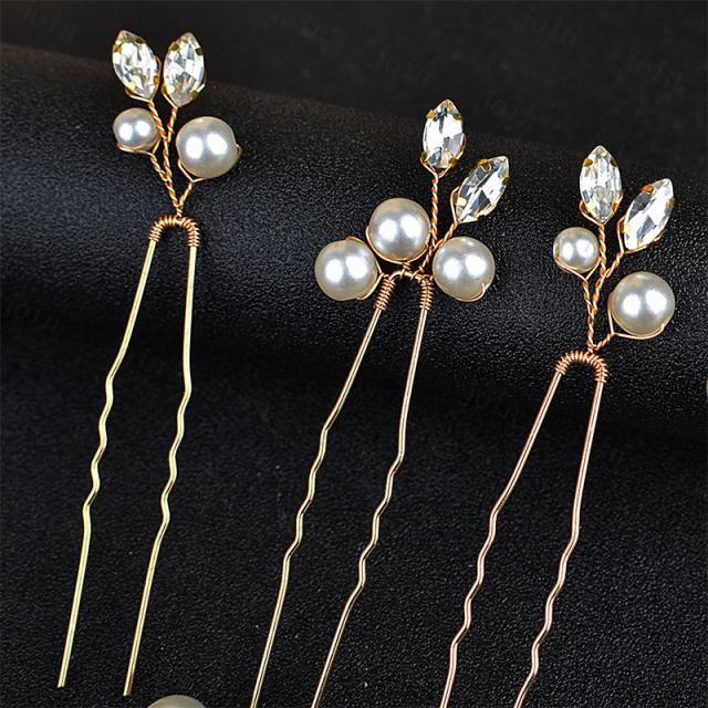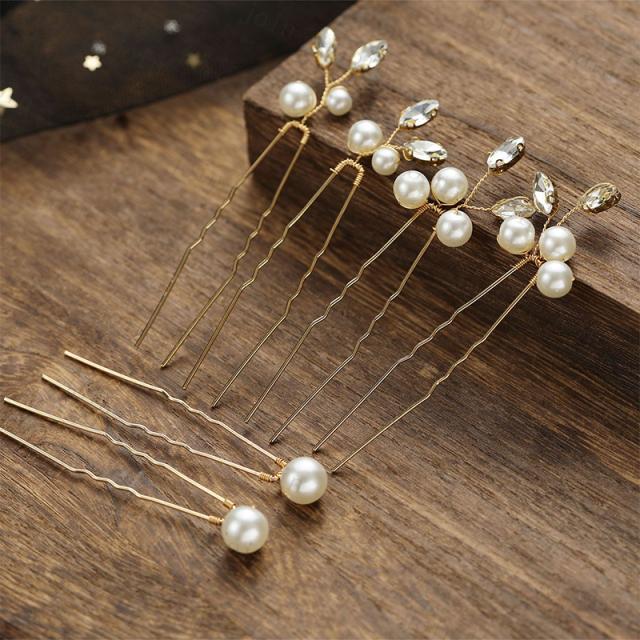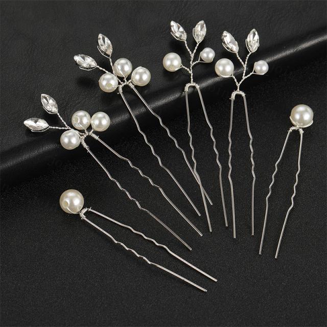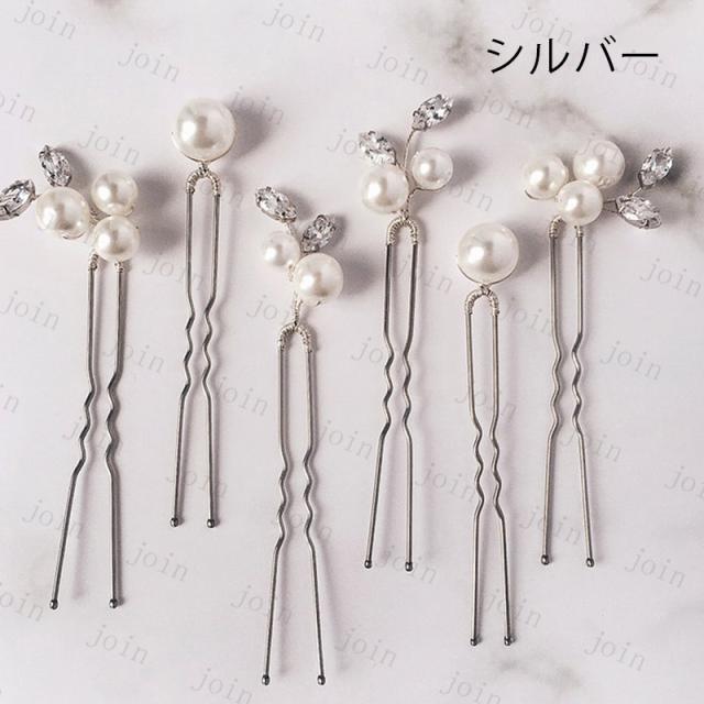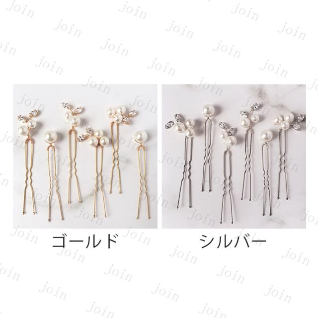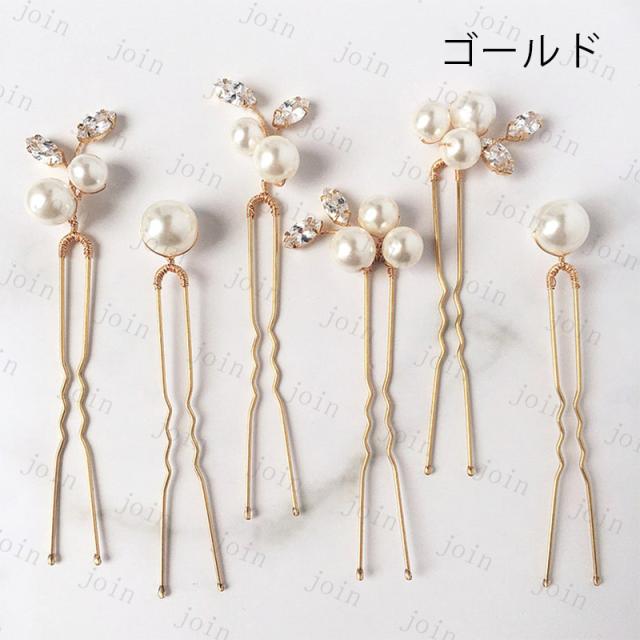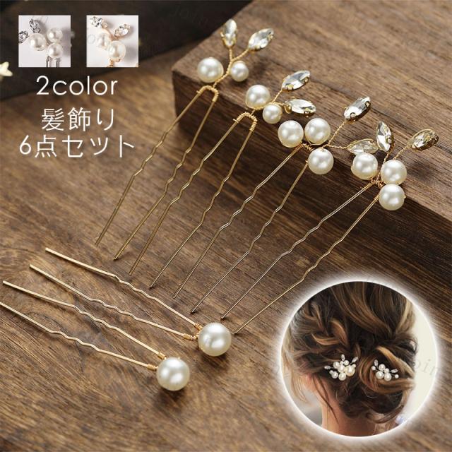 h165#髪飾り 6本セット 当日発送 2color Uピン パール 結婚式 成人式 ラインストーン 浴衣 和装 着物 ヘアアレンジ ウェディング かんざし 卒業式 ヘアピン 振袖