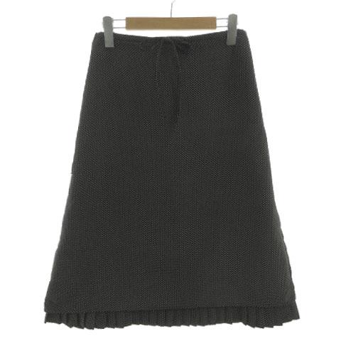【中古】ロイスクレヨン Lois CRAYON スカート 台形 ミディ丈 ウエストゴム ドローコード 裾プリーツ ドット 黒 白 M
