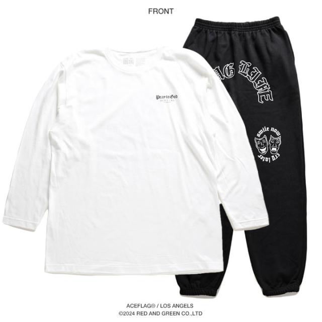 【48%OFF】ACE FLAG 上下セット 長袖 ブランド メンズ 春秋冬用 全4色 大きいサイズ エースフラッグ セットアップ ロンT スウェットパンツ 裏パイル THUG LIFE サグライフ ビッグシルエット b系 ヒップホップ ファッション ダンス ストリート系 ハイ AF-SE-LT-115