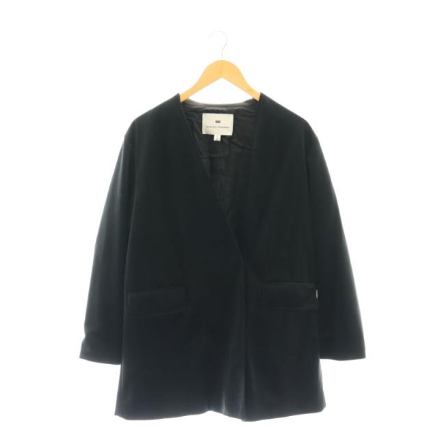 【中古】トラディショナルウェザーウェア ノーカラージャケット 総裏地 ベロア S 黒 ブラック /MF ■OS メンズ