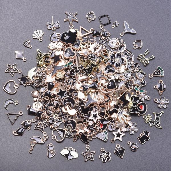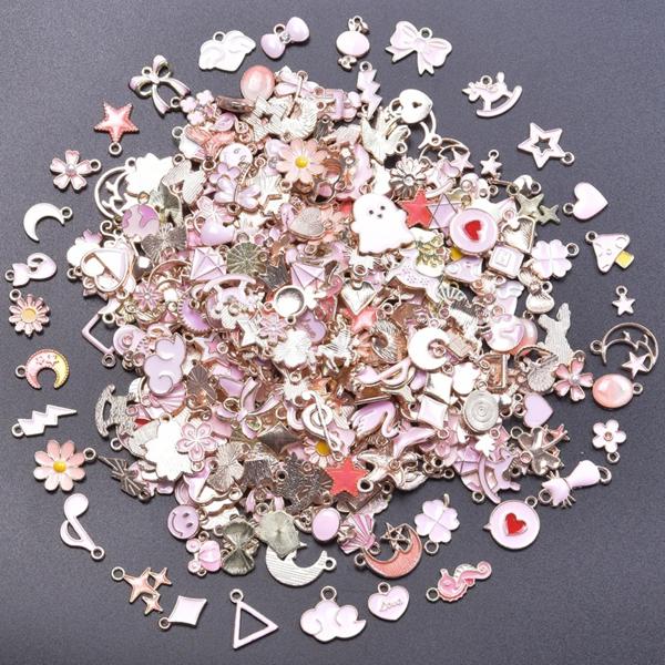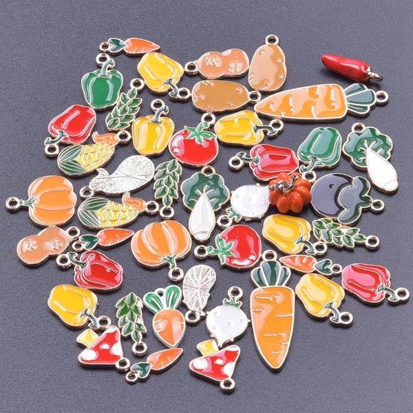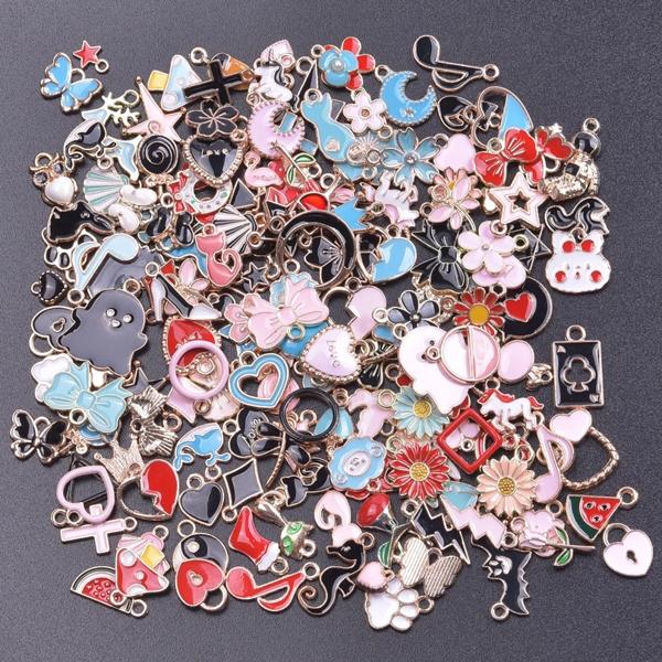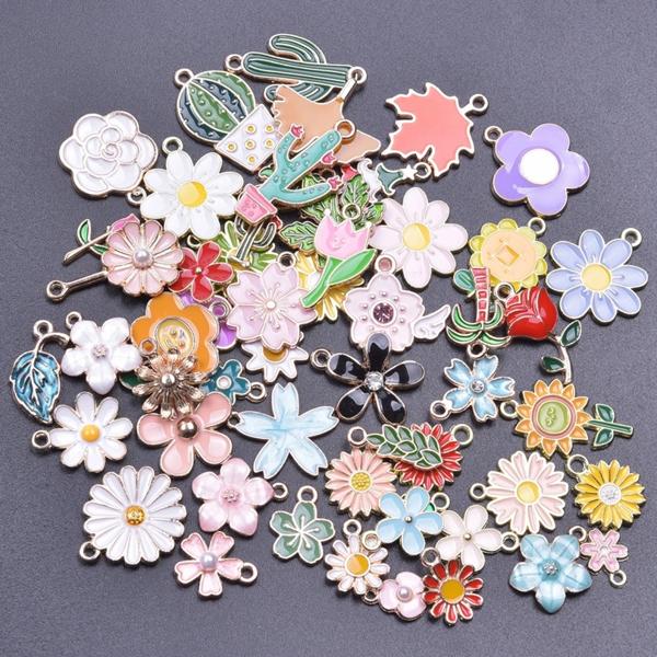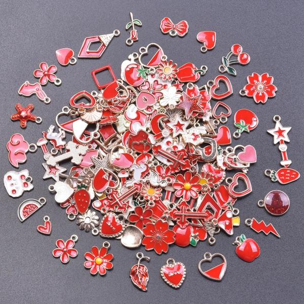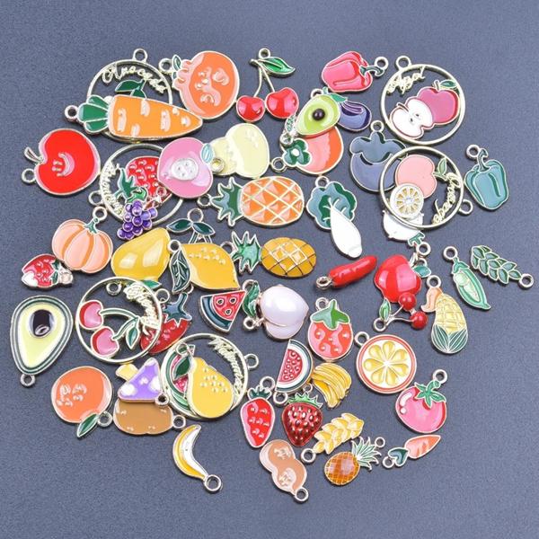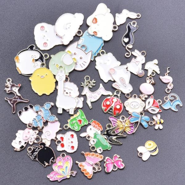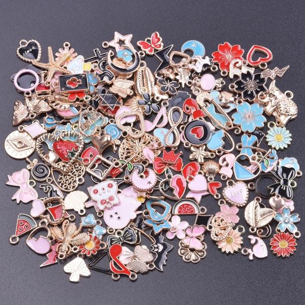 ランダムミックス-エナメルチャーム アロイとオイルペンダント 手作りジュエリー カワイイ 4色 バルク 10個セット