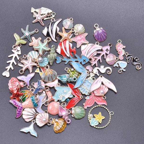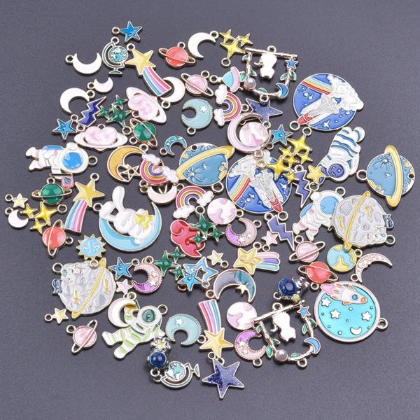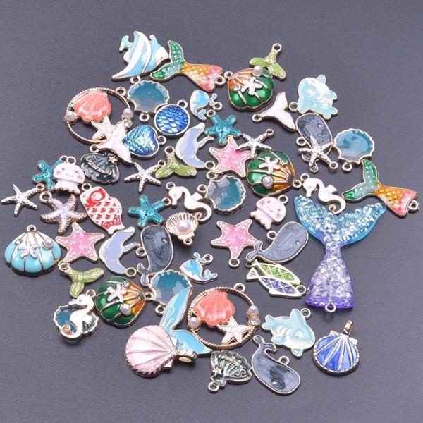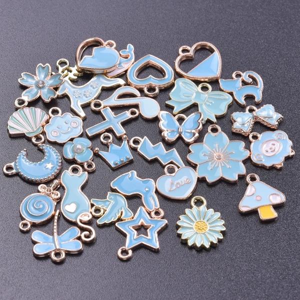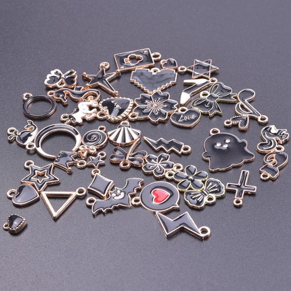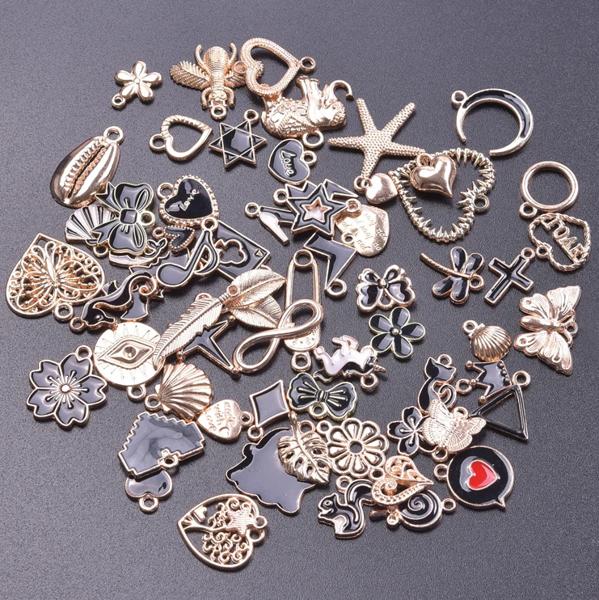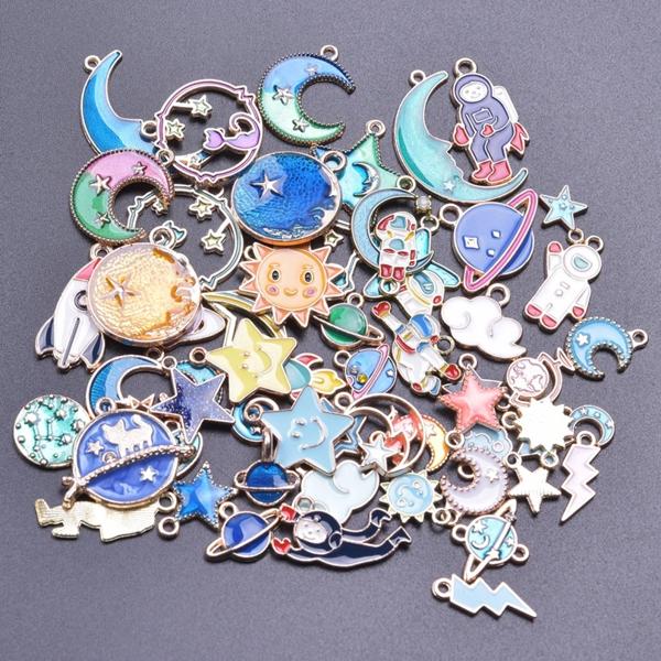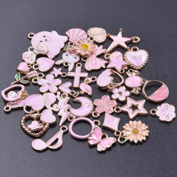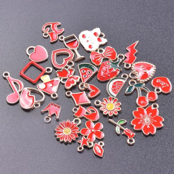 ランダムミックス-エナメルチャーム アロイとオイルペンダント 手作りジュエリー カワイイ 4色 バルク 10個セット