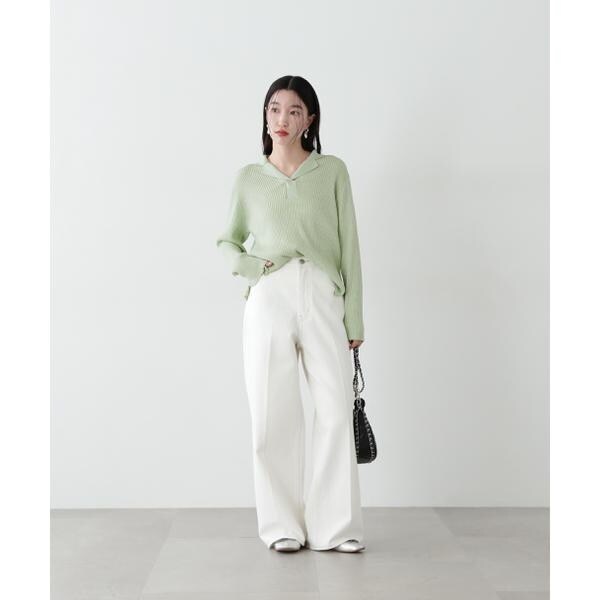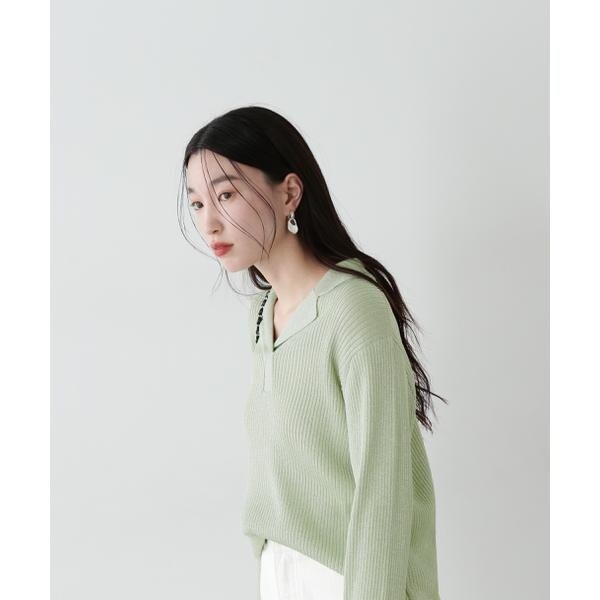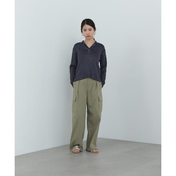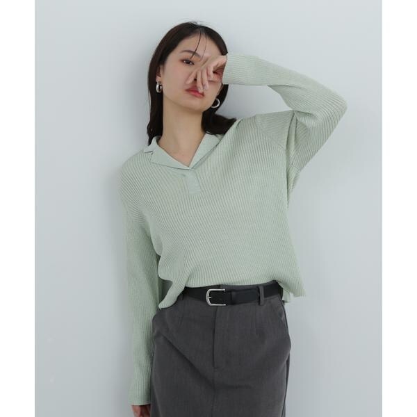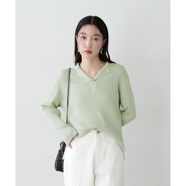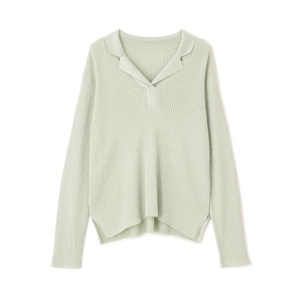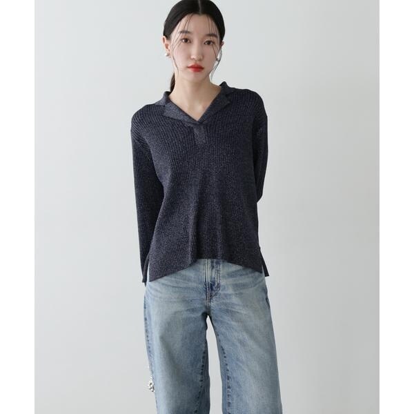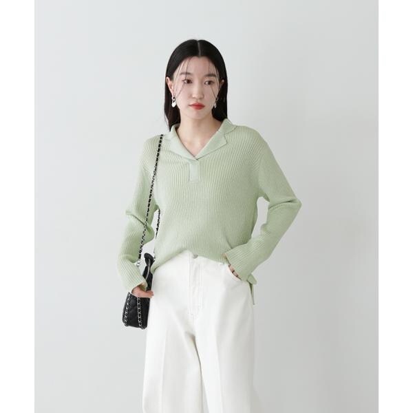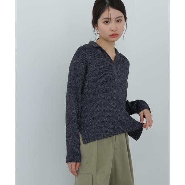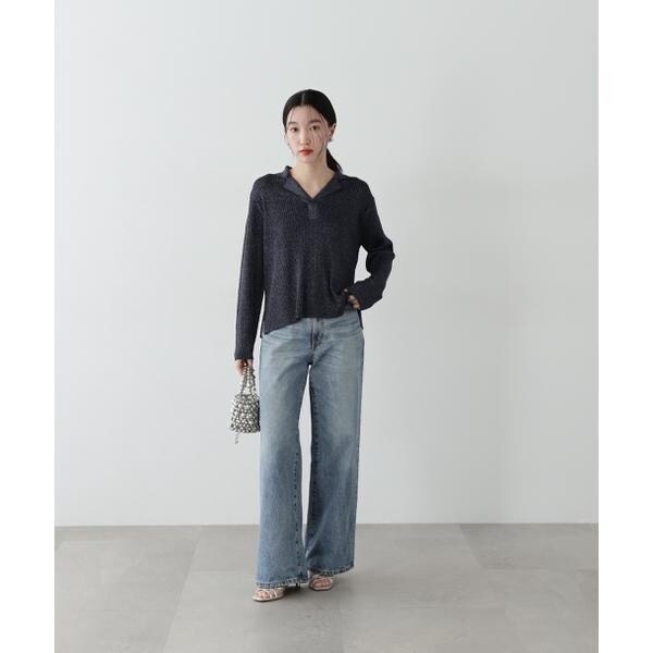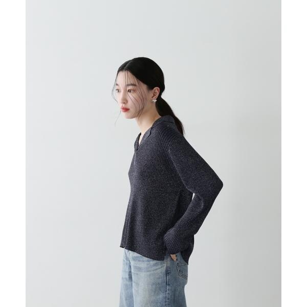 繊細に艶めくラメリブ開襟ニット。首元をシャープに見せてくれる開襟とシンプルなリブ編みデザインが、デイリー使いにぴったり。体のラインを拾いすぎないシルエットで着こなしやすいです。パンツはもちろん、落ち感やハリ感のあるスカートを合わせたコーディネートも楽しめます。