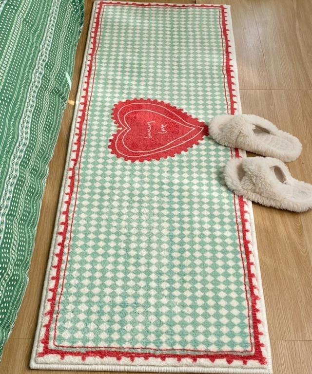 *ポップな色合いが華やかな韓国風デザインの横長ラグ