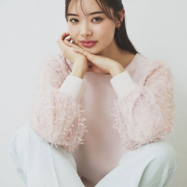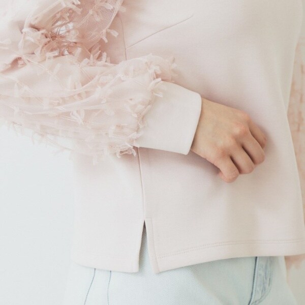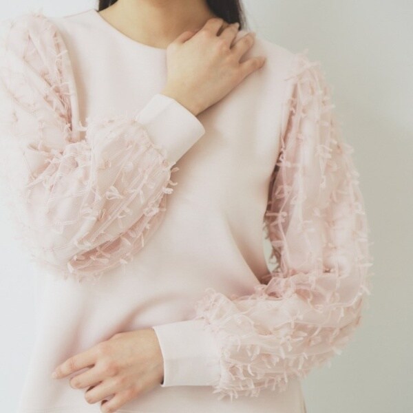 リボンチュールドッキングスリーブが華やかなデザイントップス