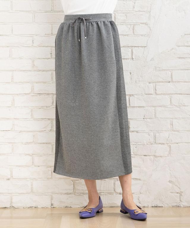 全体に散りばめられたラメが華やかなIラインスカート。