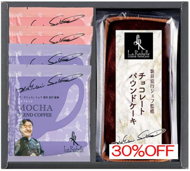 商品内容:内容/坂井宏行シェフ監修(チョコレートパウンドケーキ×1・ドリップコーヒーブラジルブレンド:7g×2・ドリップコーヒーモカブレンド:7g×2)《卵・乳・小麦》