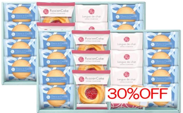 商品内容:内容/ロシアケーキブルーベリーサン×6・ラングドシャ×8・チョコインクッキー×16《卵・乳・小麦》