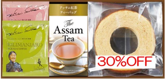 商品内容:内容/ホールバウムクーヘン×1・坂井宏行シェフ監修ドリップコーヒー(ブラジルブレンド)7g×1・坂井宏行シェフ監修ドリップコーヒー(キリマンジャロブレンド)7g×1・アッサム紅茶ティーバッグ2g×3袋×1《卵・乳・小麦》