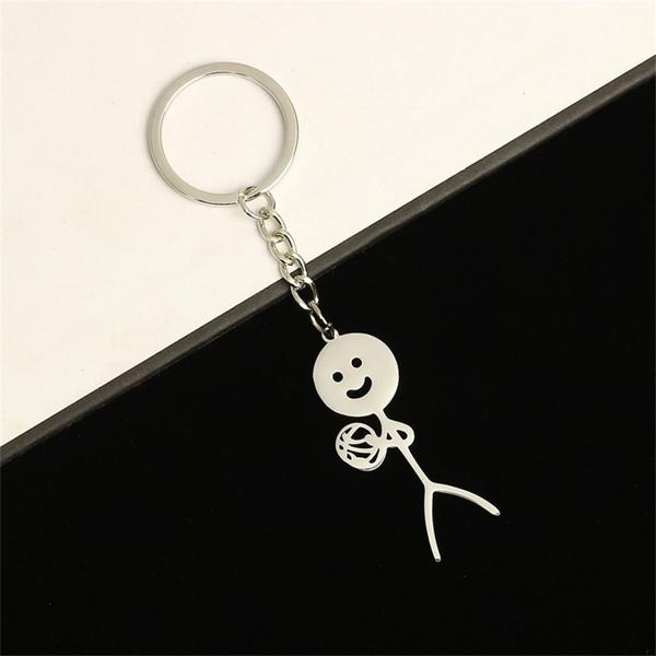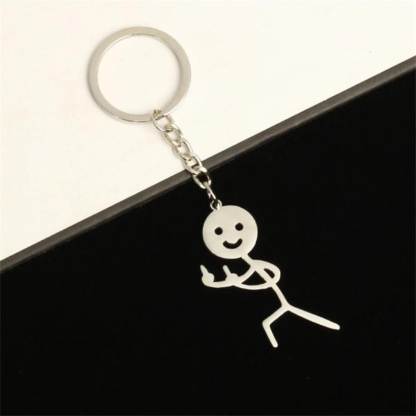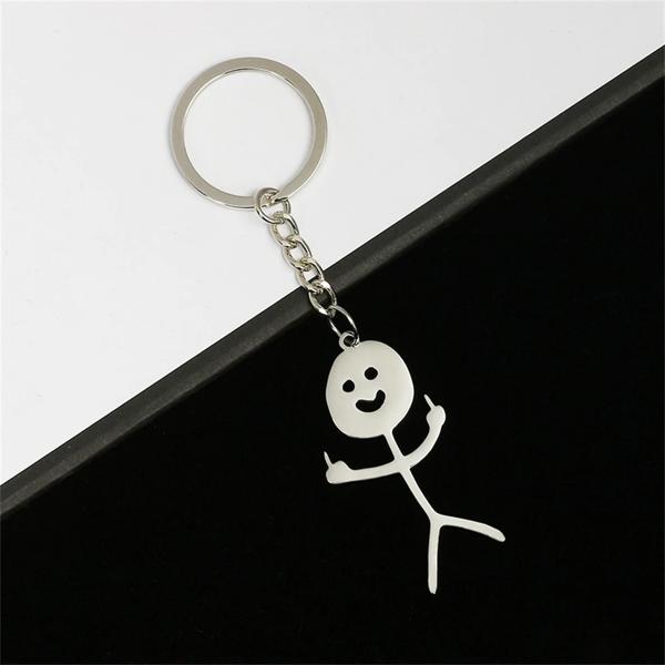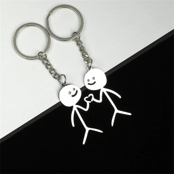 男性と女性のための指とハートのキーホルダー、ステンレス鋼の落書きのキーリング、面白いスティックマンキーホルダー、バッグと車のキーペンダント、カップルのギフト、1ペア