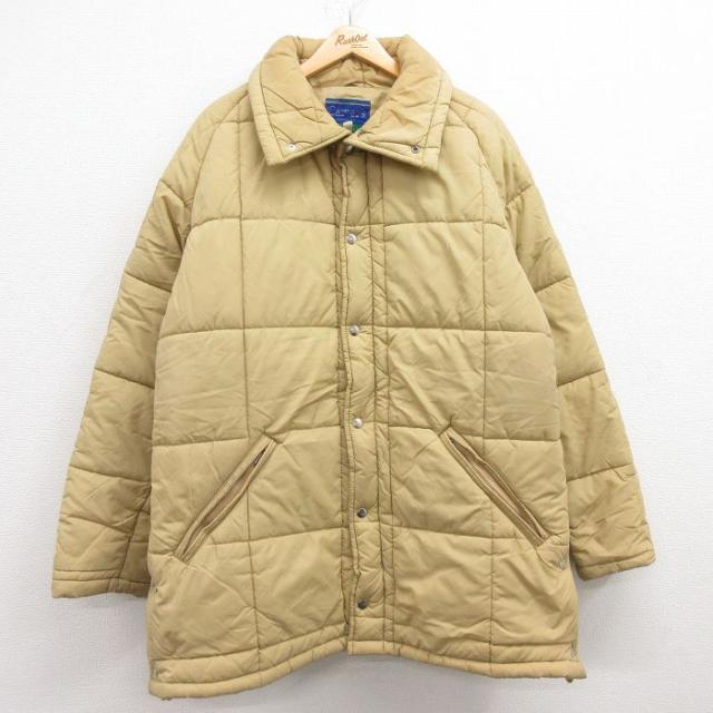 古着 長袖 ジャケット メンズ 80年代 80s ロング丈 ベージュ系 カーキ XLサイズ 中古 アウター 中古 古着