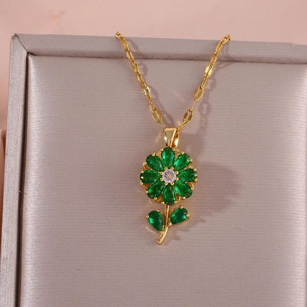女性のための360 ° 回転する緑のひまわりペンダントネックレス,創造的な減圧,ライトの意味,ラグジュアリー,ミニデザイン