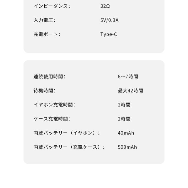 充電ケース電池容量:500mAh