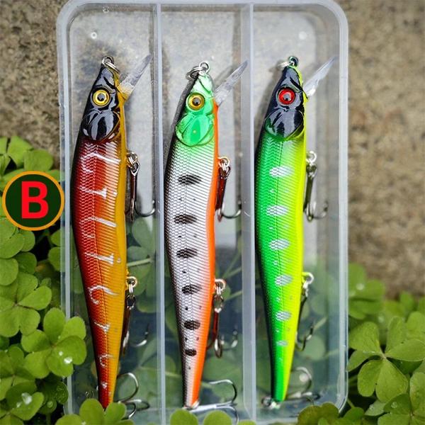 日本の釣り餌,魚を捕まえるためのルアー,ミノー釣り道具,シーバス,パイク,ウォブラー,スイマー,12cm, 14g, 3個