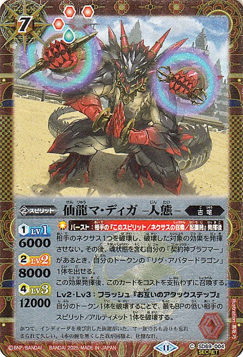 バトルスピリッツ 仙龍マ・ディガ -人態-(シークレット) メガデッキ 豪炎の創世主(SD69) 004 | 古竜 スピリット 赤