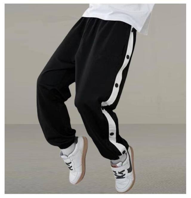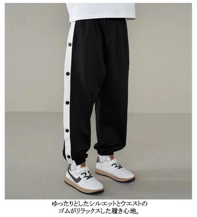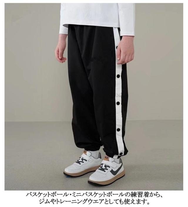 バスケットボールパンツ キッズ ジュニア 春秋 チーム用ウェア バスケットボールパンツ ダンスパンツ 男の子 女の子 バスケットパンツ スナップボタン 裾ボタン サイドボタン サイドライン 春 夏 秋 冬 長ズボン ロングパンツ