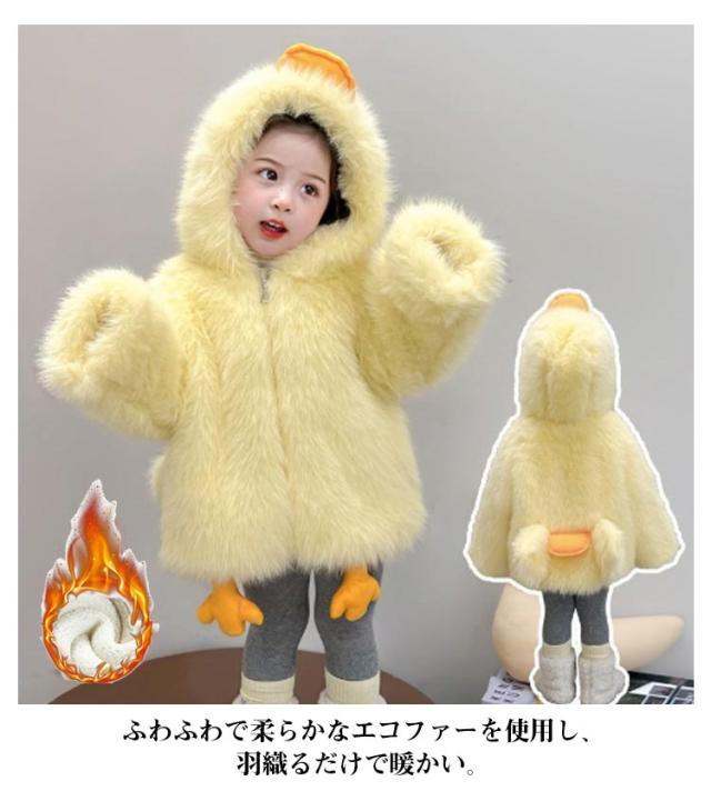 | 気軽に着こなせ着回し抜群のキッズアヒルコート 寒い日も可愛くお出かけしたくなる!この冬のおすすめアイテムです。 ふわふわで柔らかなエコファーを使用し、羽織るだけで暖かい。 フード付いて冷風を防ぎ、子どもの頭を守て防寒性を発揮します! きれいめからカジュアルコーデまで合わせやすいおしゃれなデザイン。 防寒、保温に今年冬子供にギフトにも喜ばれること間違いなし♪ | |